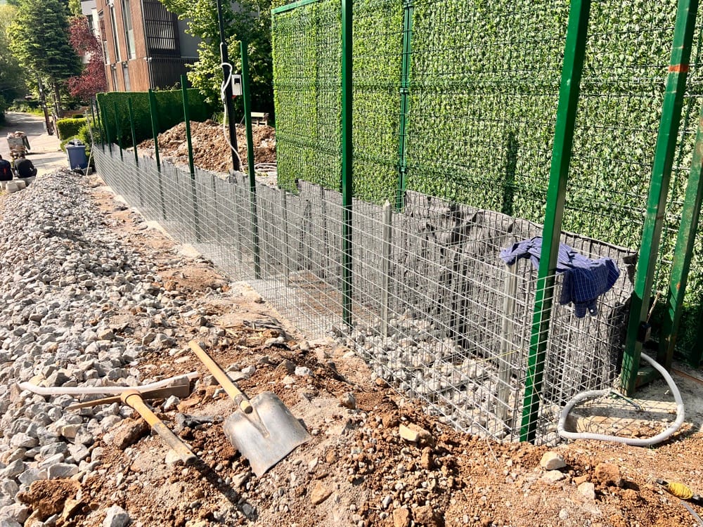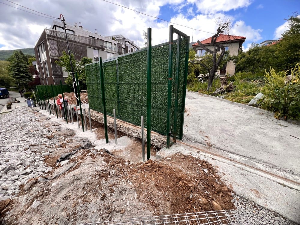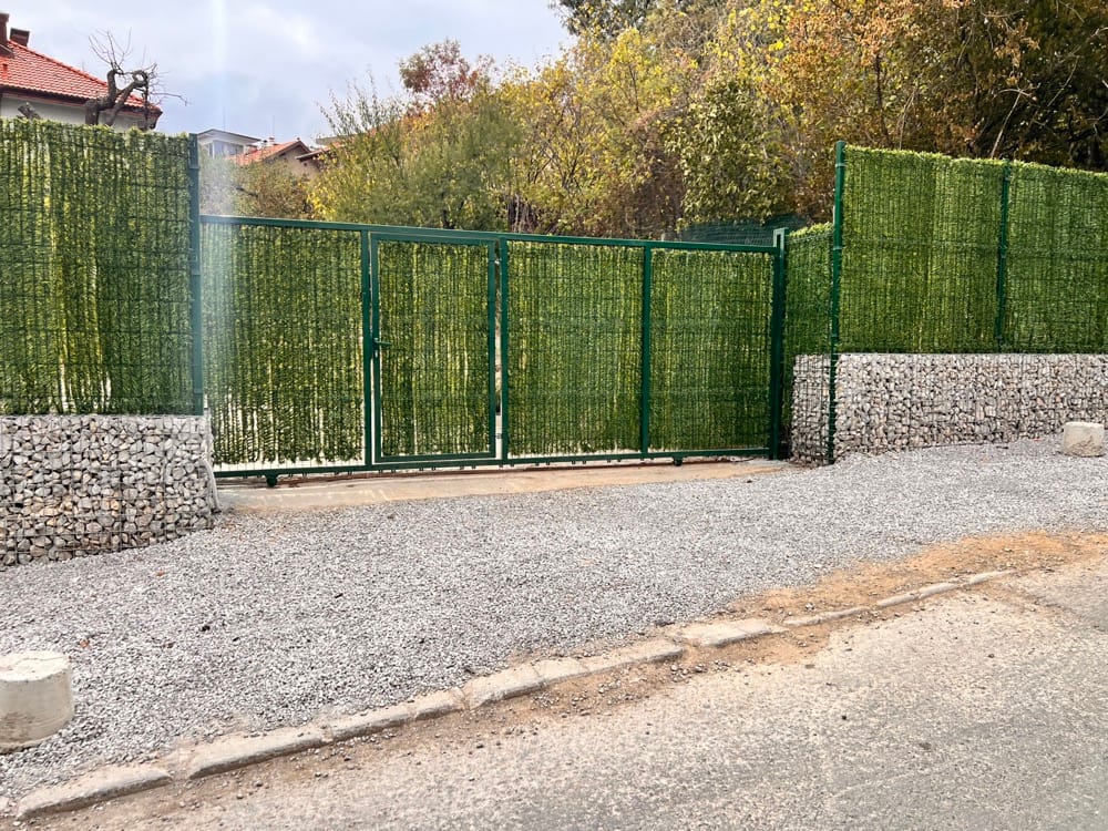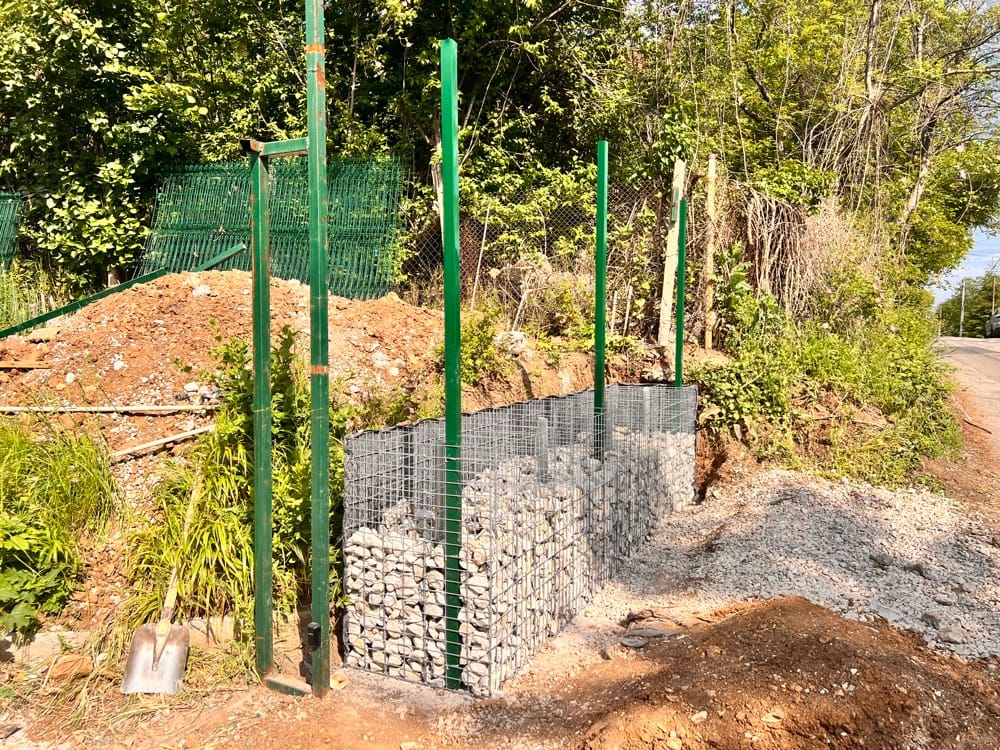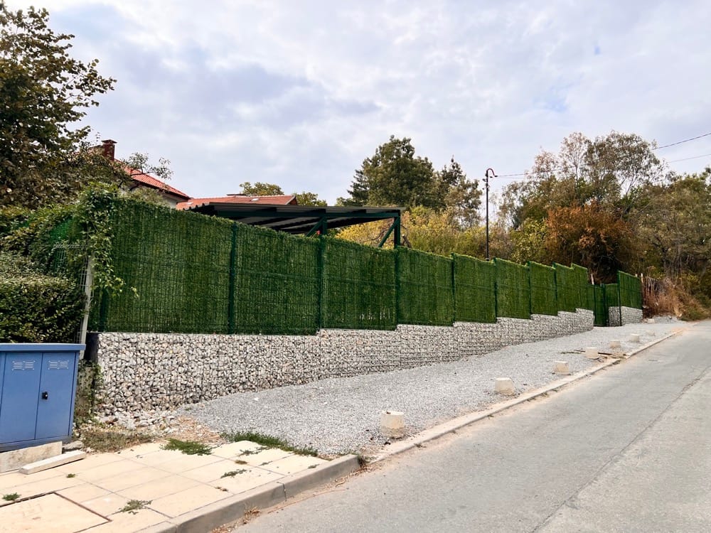 Подпорна стена от габиони с ажурна ограда