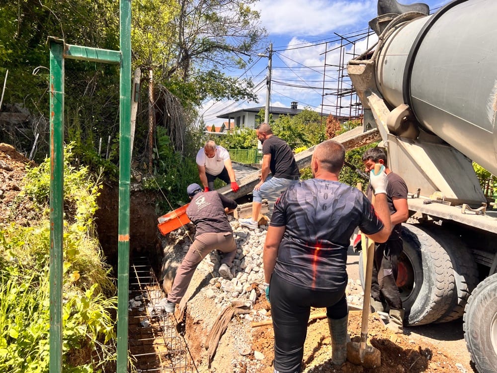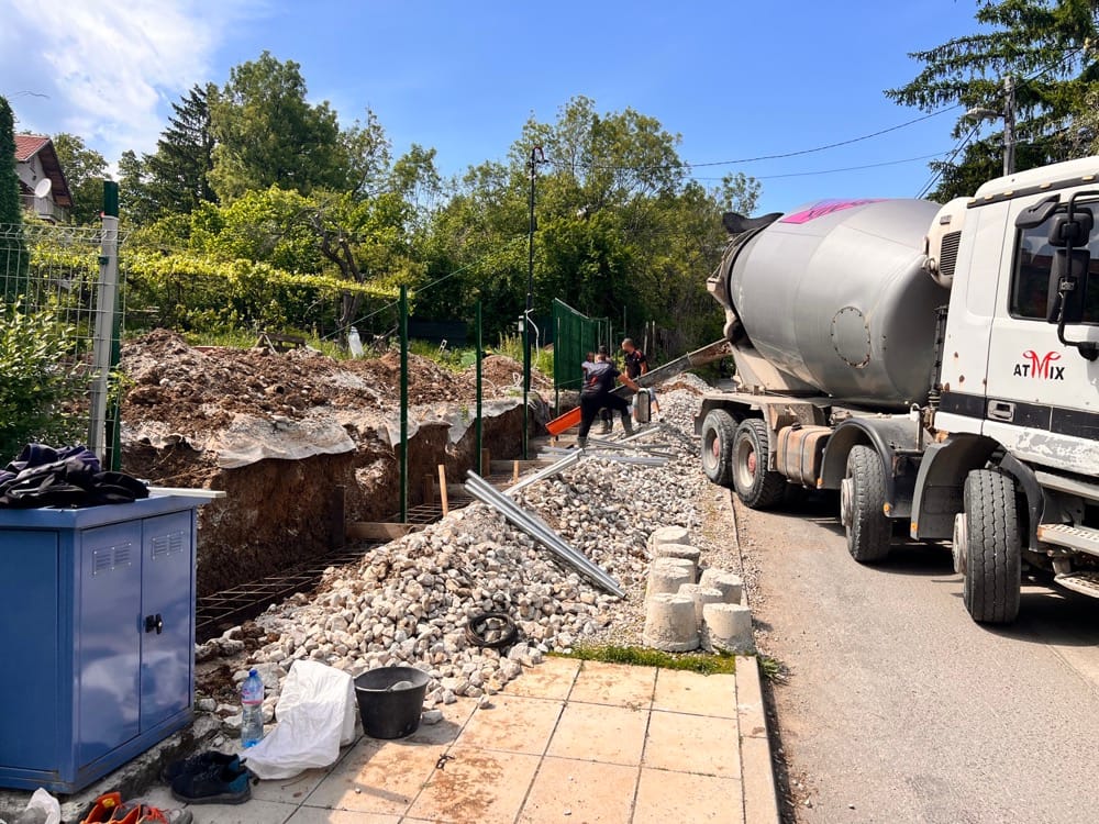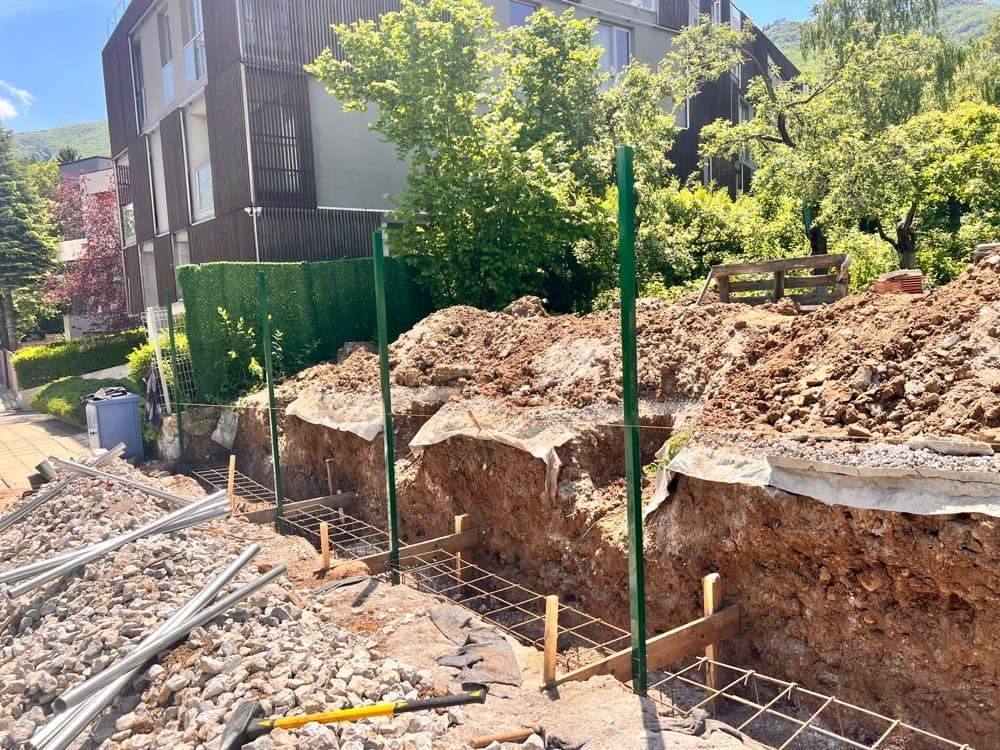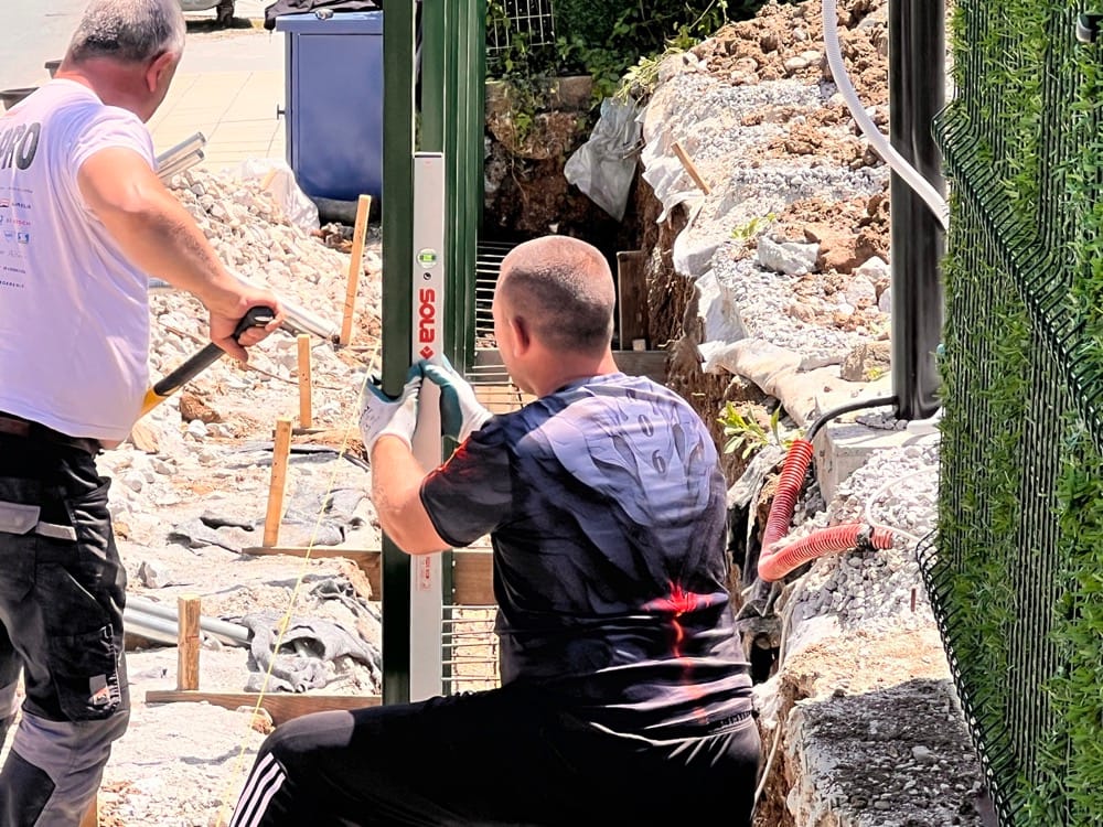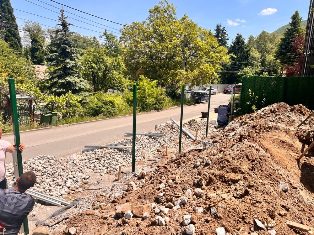 Подпорна стена от габиони с ажурна ограда